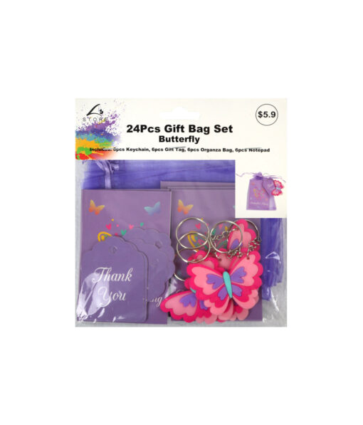 Featuring 24 beautifully coordinated pieces, this set includes keychains, gift tags, organza bags, and mini notepads.