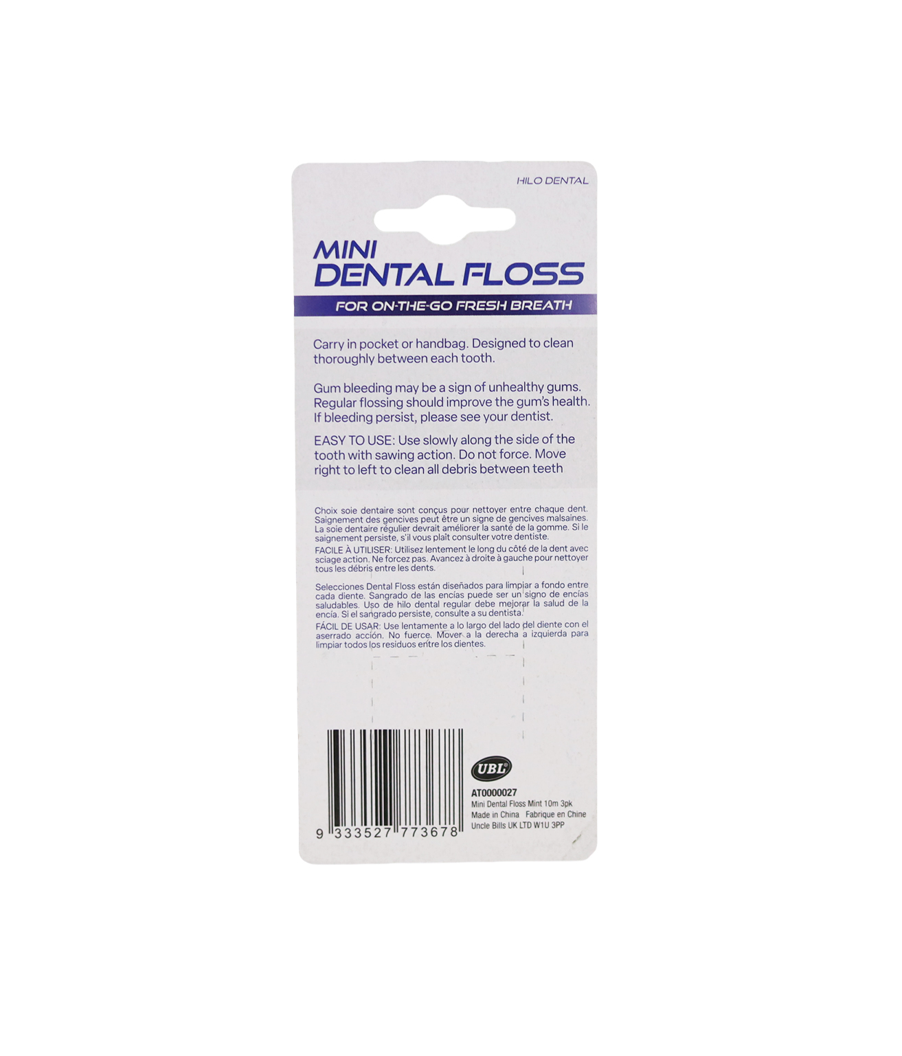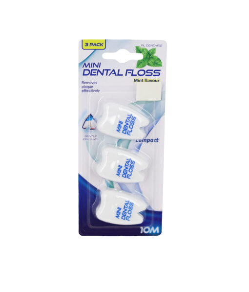 Maintain optimal oral hygiene with the Mini Dental Floss Mint 10m 3pk.