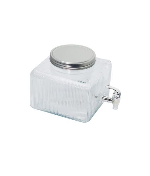 A 3.7L ribbed glass dispenser with a metal lid and tap.