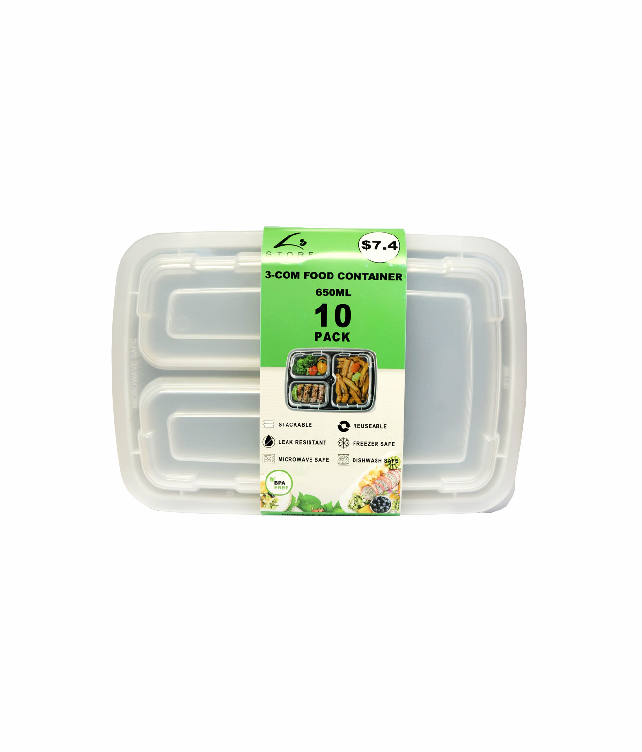 Ideal for meal prep, portion control, or storing leftovers, each container offers three sections to keep food items fresh and organized.