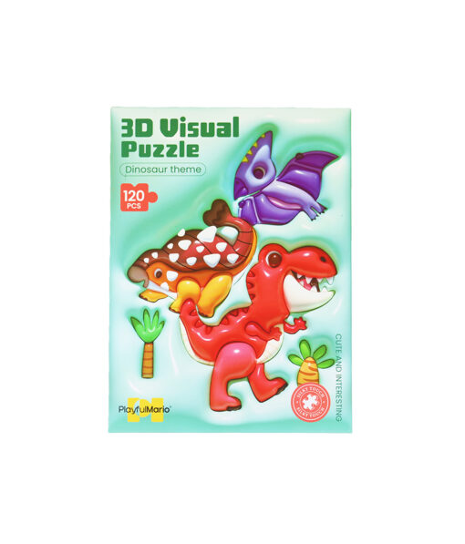 3D Visual Puzzle set featuring 120pcs, available in 6 assorted designs including deserts, mermaid, ice cream, dinosaur, space, and traffic.