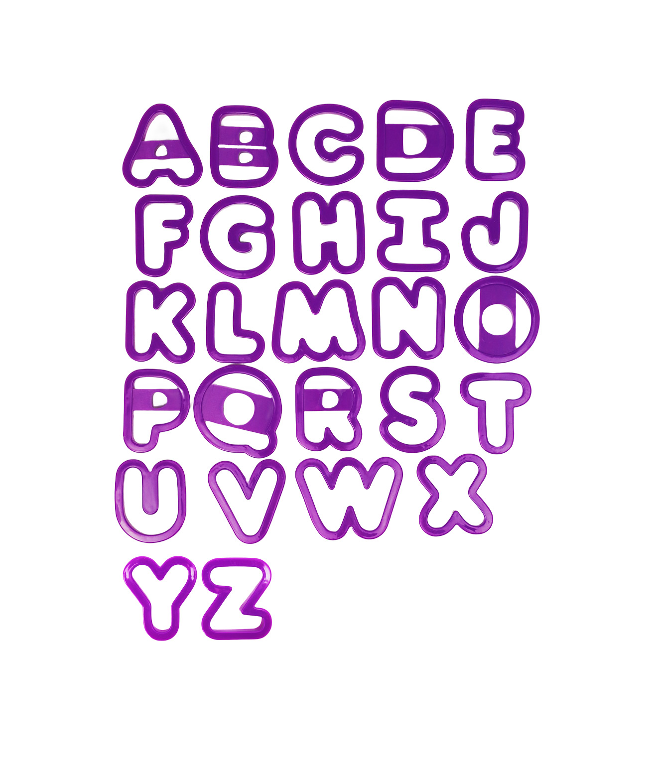 The Alphabet Cookie Cutters Set includes 26 sturdy and easy-to-use cutters, one for each letter of the alphabet.