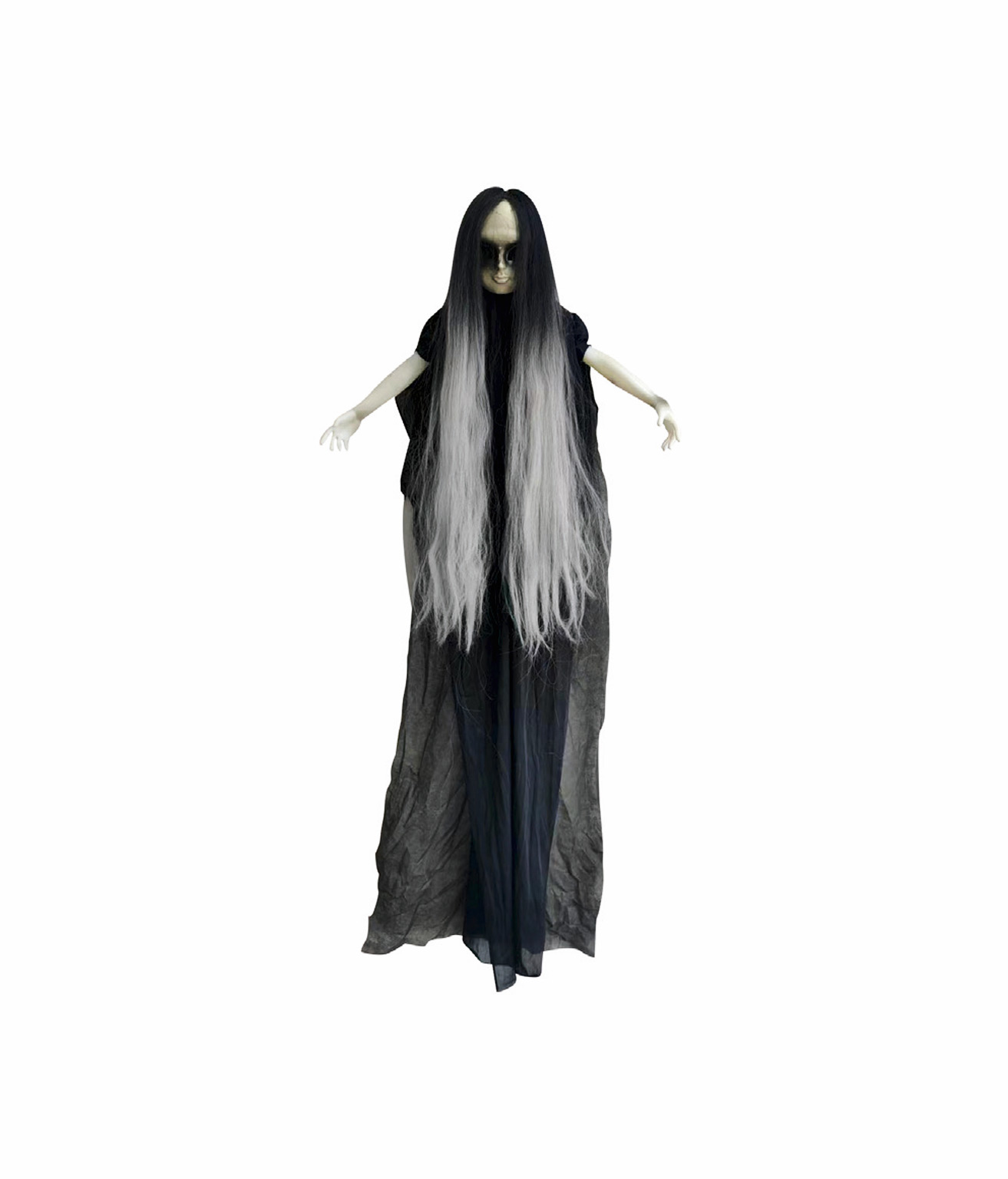 This eerie figure lights up and emits spooky sounds, activated by sound control to startle unsuspecting guests.