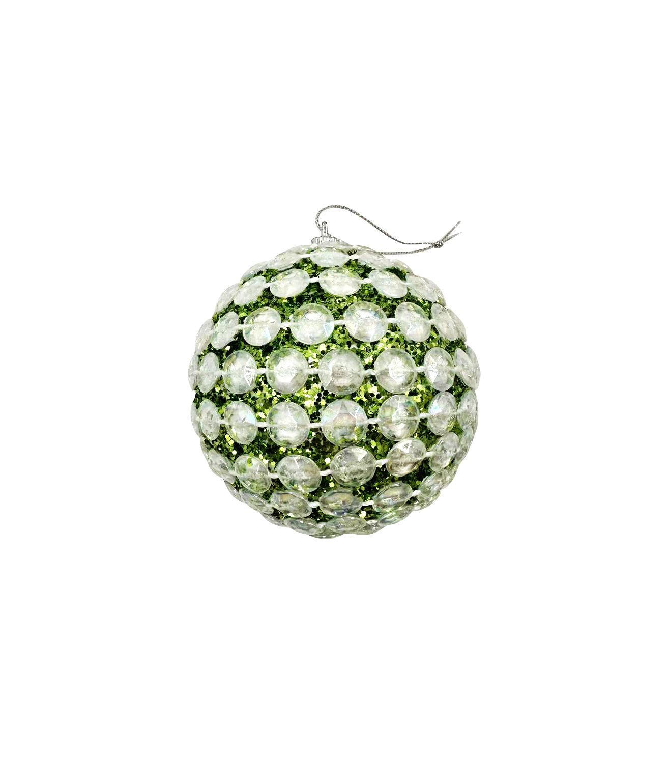 Add a fresh and festive pop of colour to your holiday decor with the Apple Green Christmas Ball With Iridescent White Bead Chain 8cm.