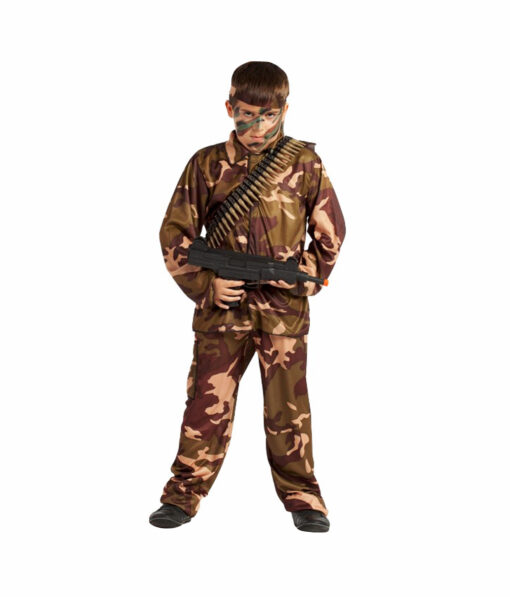 This classic camo outfit is perfect for little ones who want to dress up as a brave soldier for their next costume party, school event, or themed celebration.