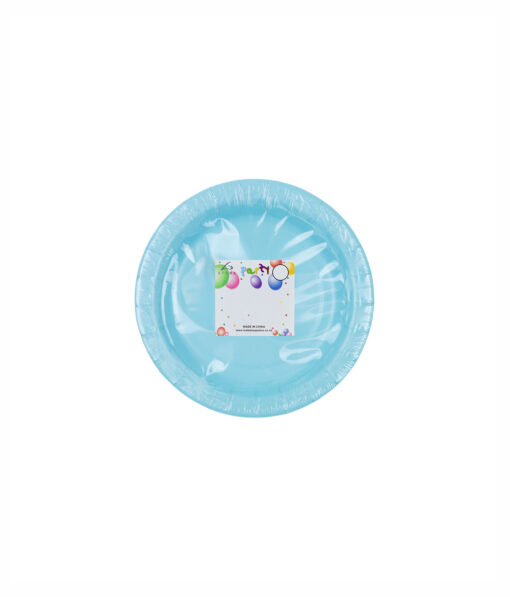 A bulk pack of 100 baby blue paper plates, perfect for parties, catering, events, and large gatherings.
