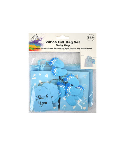 Featuring 24 beautifully coordinated pieces, this set includes keychains, gift tags, organza bags, and mini notepads.