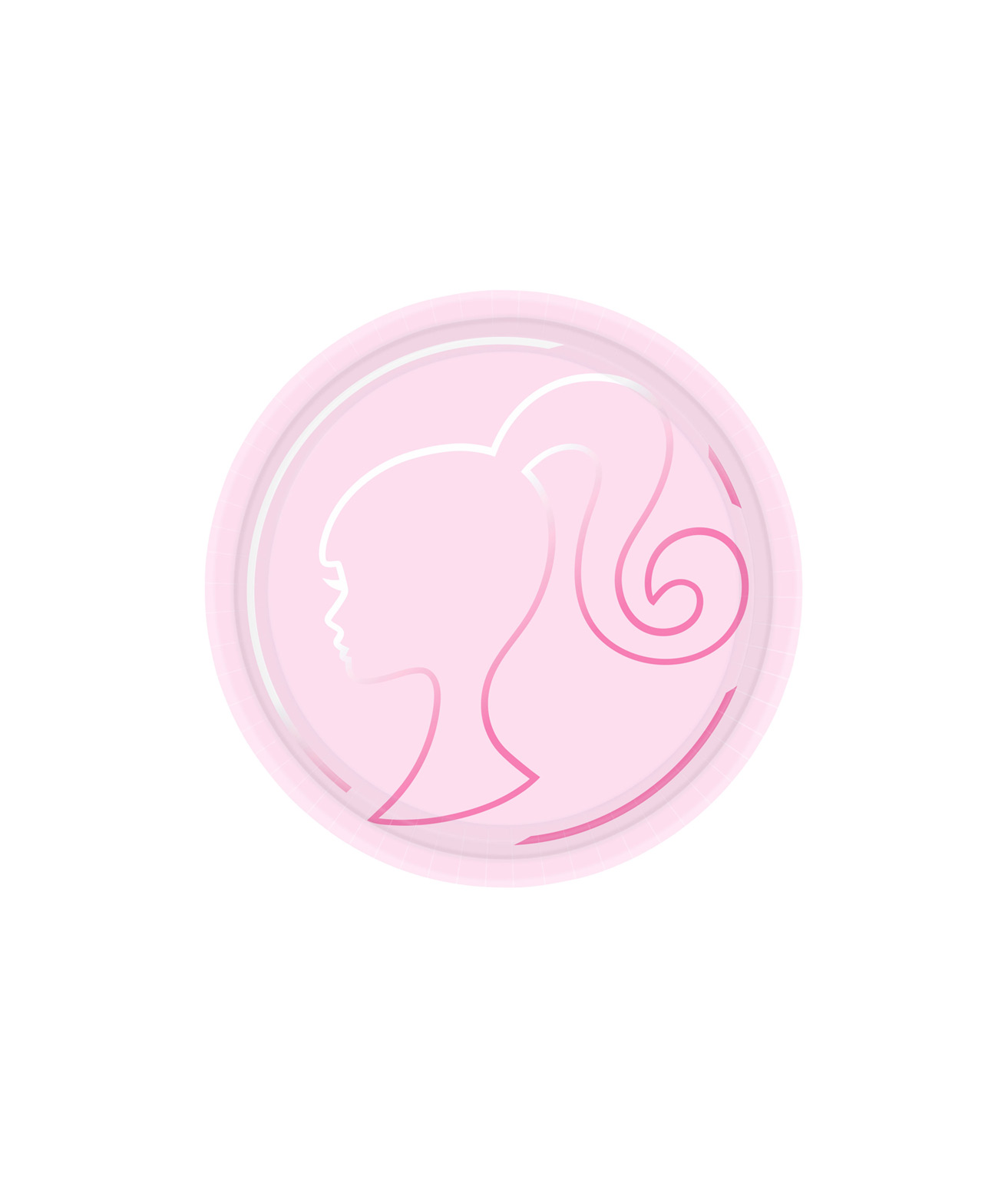 This pack of 8, 23cm plates features a pink design, perfect for serving snacks, cake, or party treats at your Barbie-themed event or birthday celebration.