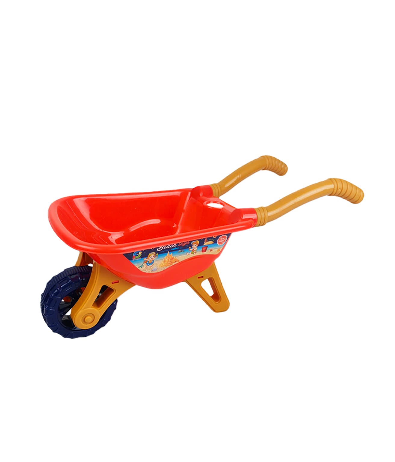 6-Piece Beach Toy Set, measuring 36x15x14cm. It includes wheelbarrow, shovels, watering can and sand molds, perfect for kids’ sand and water play at beach or backyard.