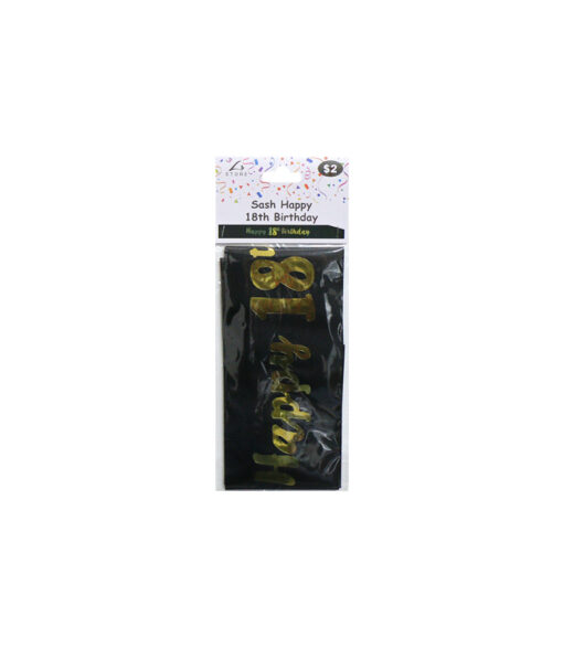 Featuring our black 18th sash with gold foil print happy birthday party sash.