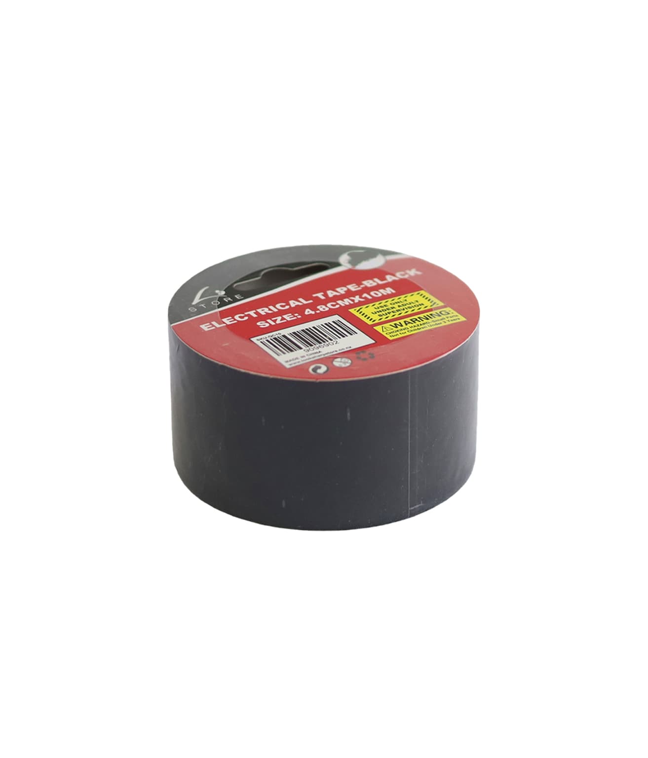 Black electrical tape measuring 4.8cm x 10m, designed for insulation, protection, and bundling of electrical wires. Provides a durable and flexible solution for electrical and DIY projects.