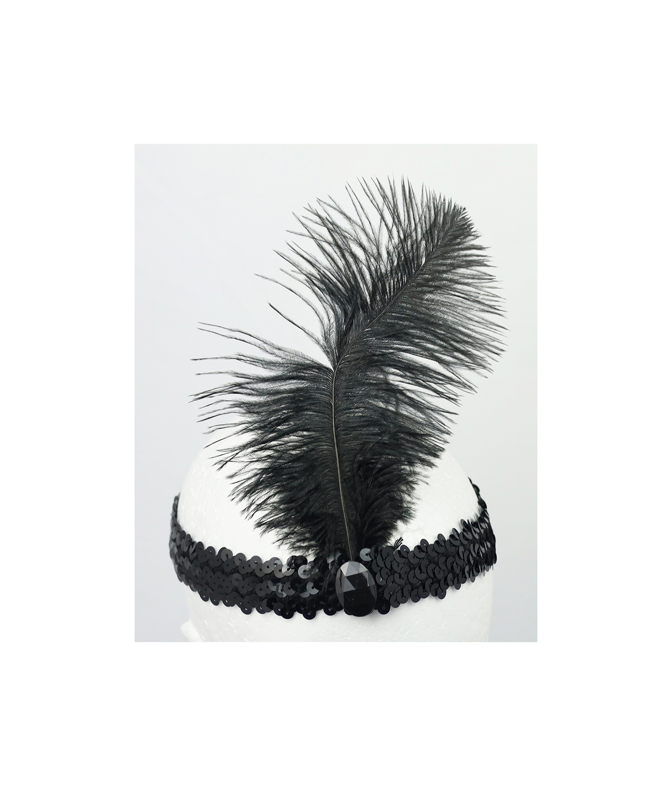 Featuring a classic black band adorned with a chic feather, this headband effortlessly channels the glamour of the 1920s.