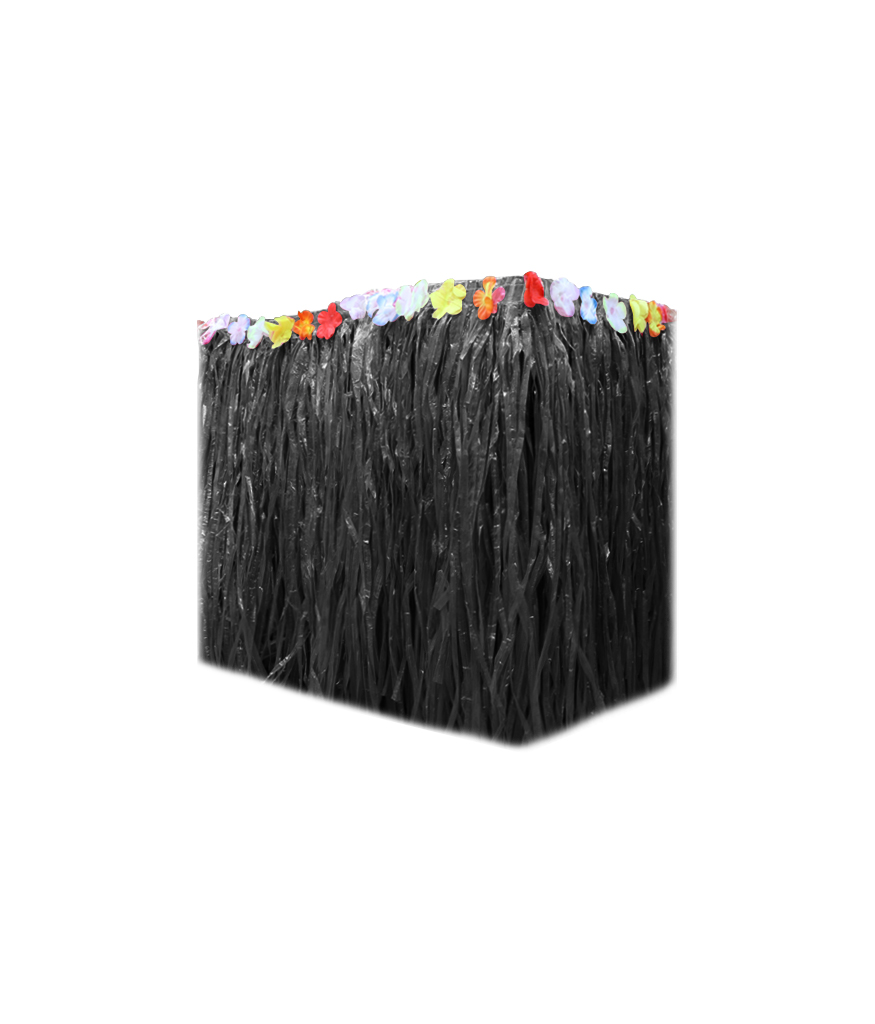 Black Luau table skirt measuring 75x274cm, perfect for adding a festive and stylish touch to your party or event tables.