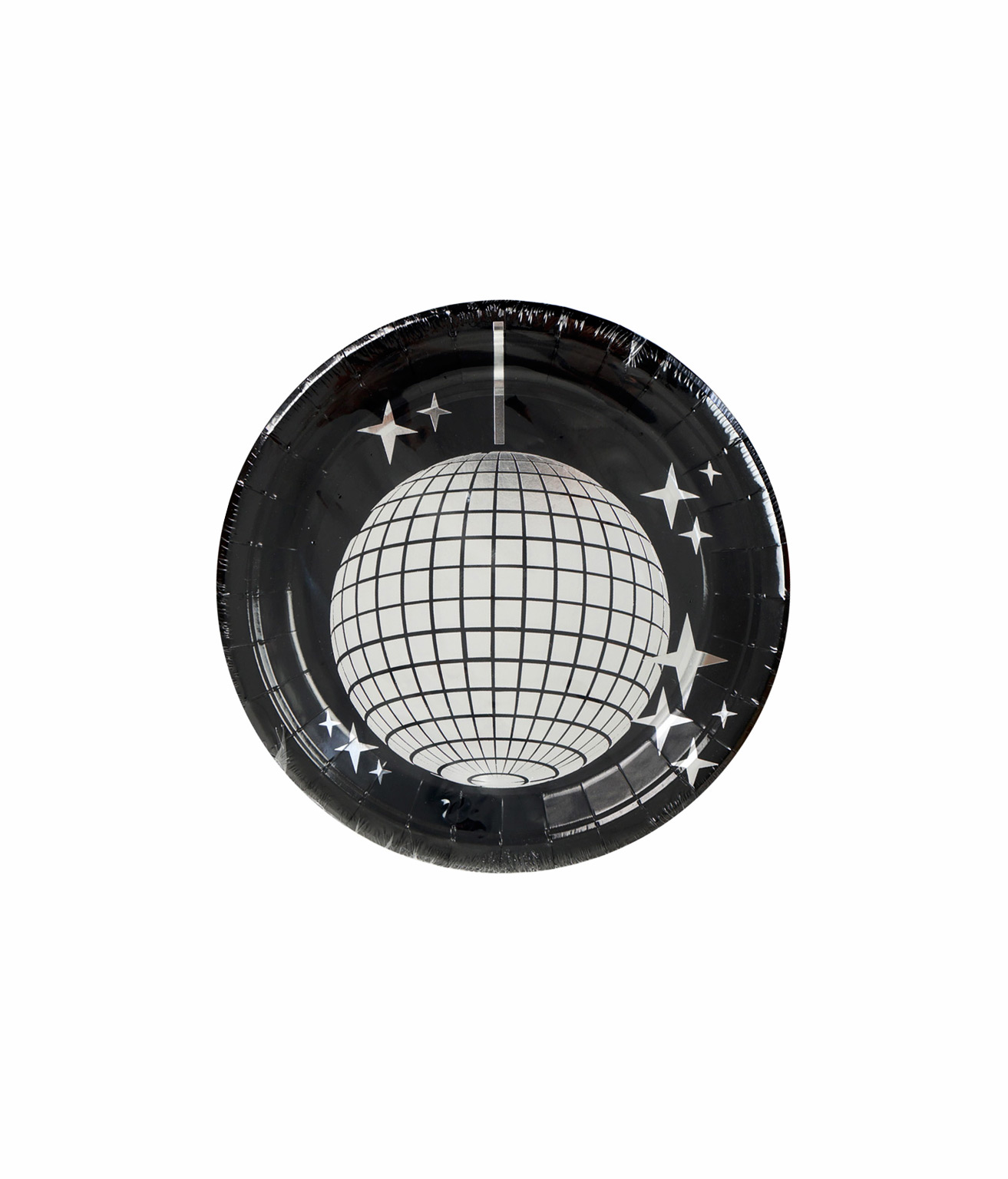 Turn up the party vibes with these Black Paper Plates with Disco Print.