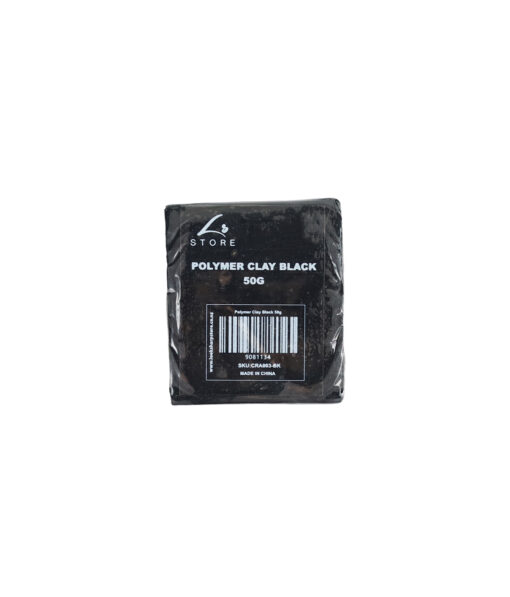 Black polymer clay block weighing 50g. Compact size of 4.5 x 5 x 1cm suitable for crafting, modeling, and creative projects.