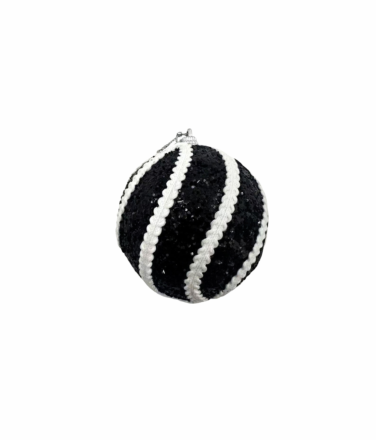 Add a bold and contemporary touch to your festive decor with the Black With White Rope Christmas Ball 8cm.