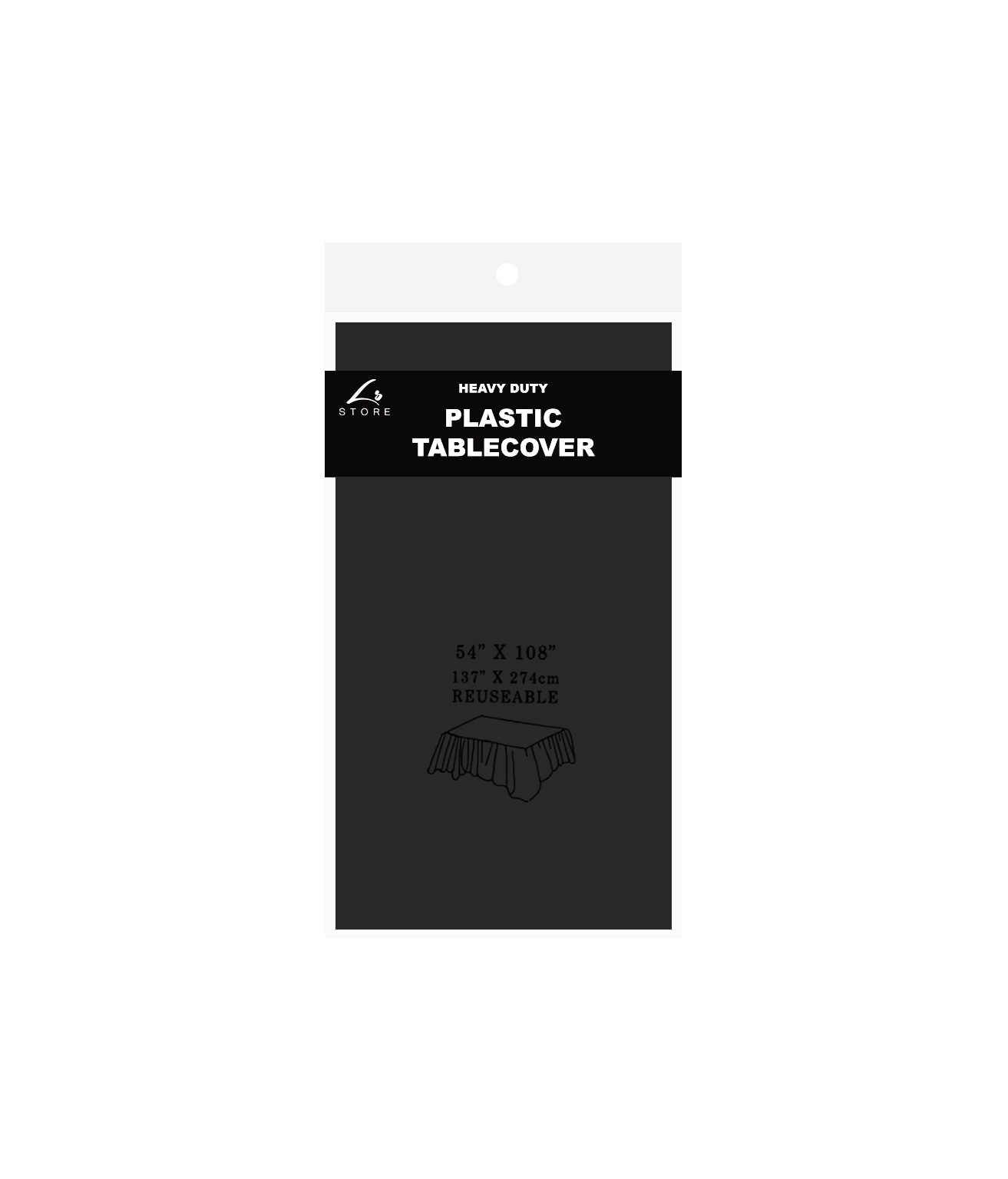 Black heavy duty plastic table cover measuring 137 x 274cm.