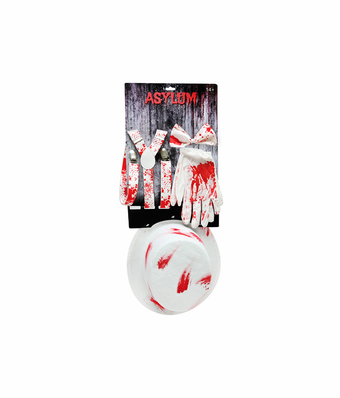 This blood-splattered set includes all the finishing touches for a creepy and coordinated look.