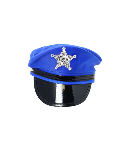 Blue American Police hat designed for parties and themed events.