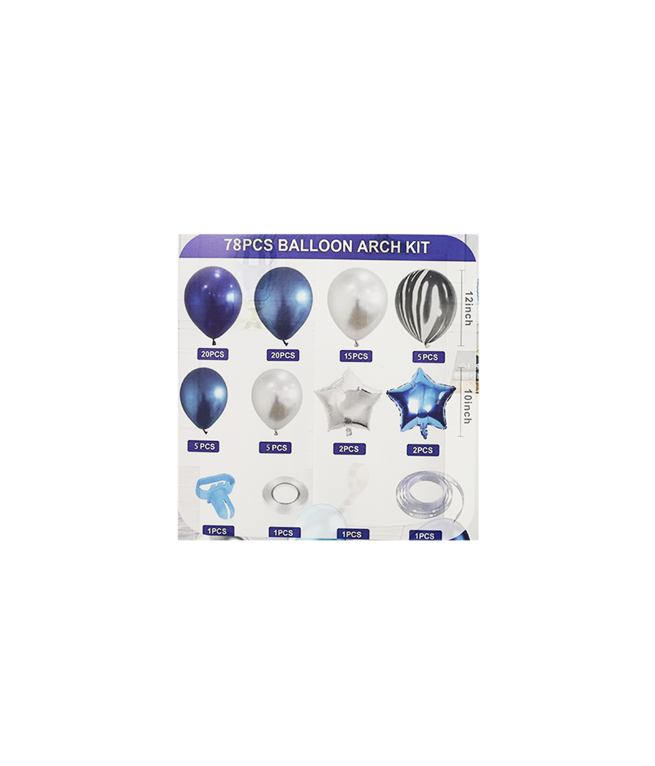 This DIY assembly kit includes 78 assorted balloons, offering a creative touch to your event decor.