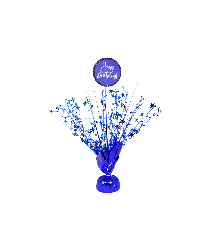 Our blue birthday table centerpiece really pulls a table setting together and features long foil strands and bendable wire pieces with foil stars attached, this weighted table centerpiece can be shaped to suit your party theme.