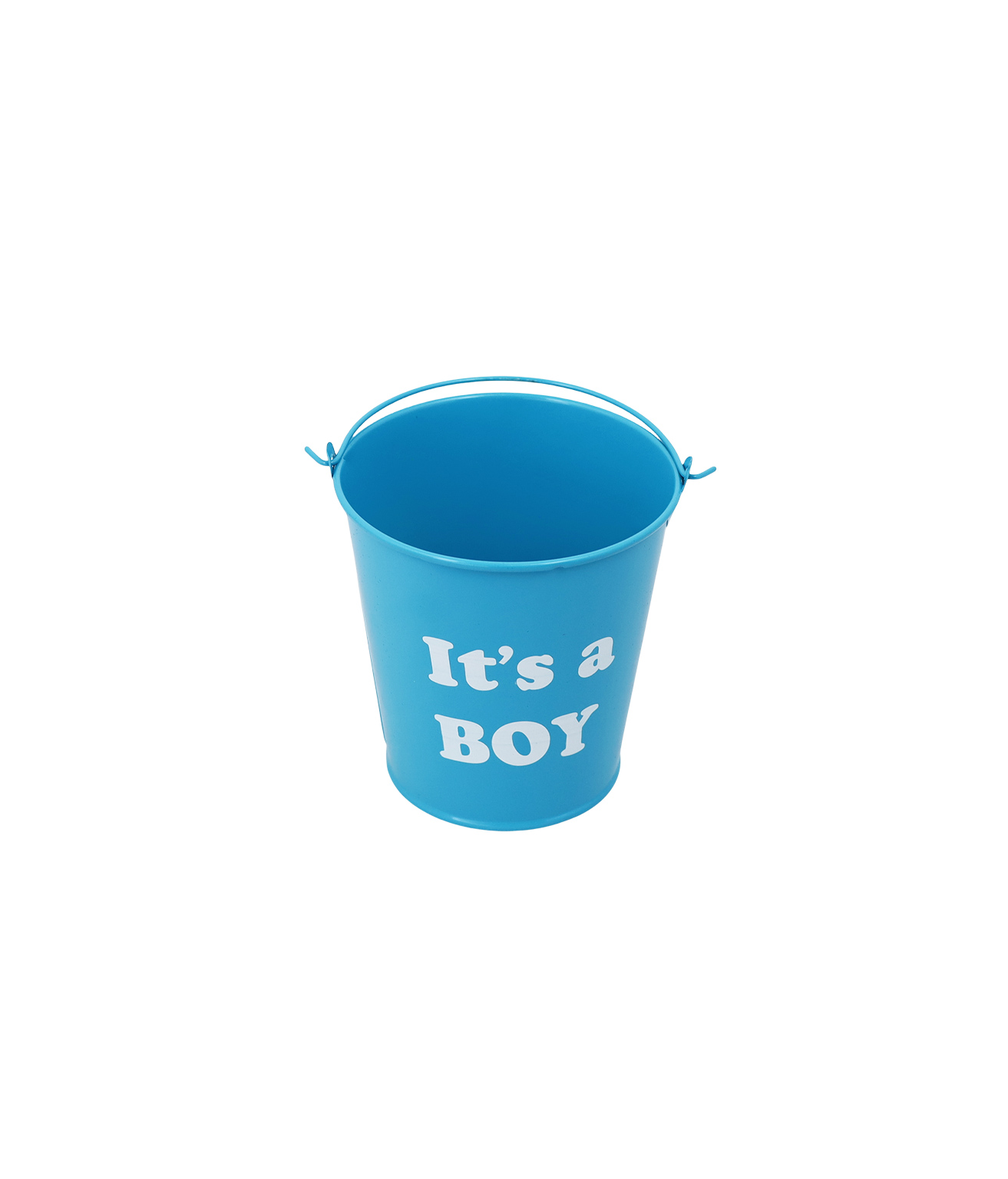This Blue “It’s a Boy” Metal Bucket With Handle is a versatile and stylish addition to your home, garden, or event decor. Its simple yet elegant design makes it perfect for a variety of uses, from organizing small items to serving as a decorative planter or party accessory. With its compact size and sturdy handle, it’s easy to carry and place wherever needed. Whether used indoors or outdoors, this bucket adds a touch of charm to any space.