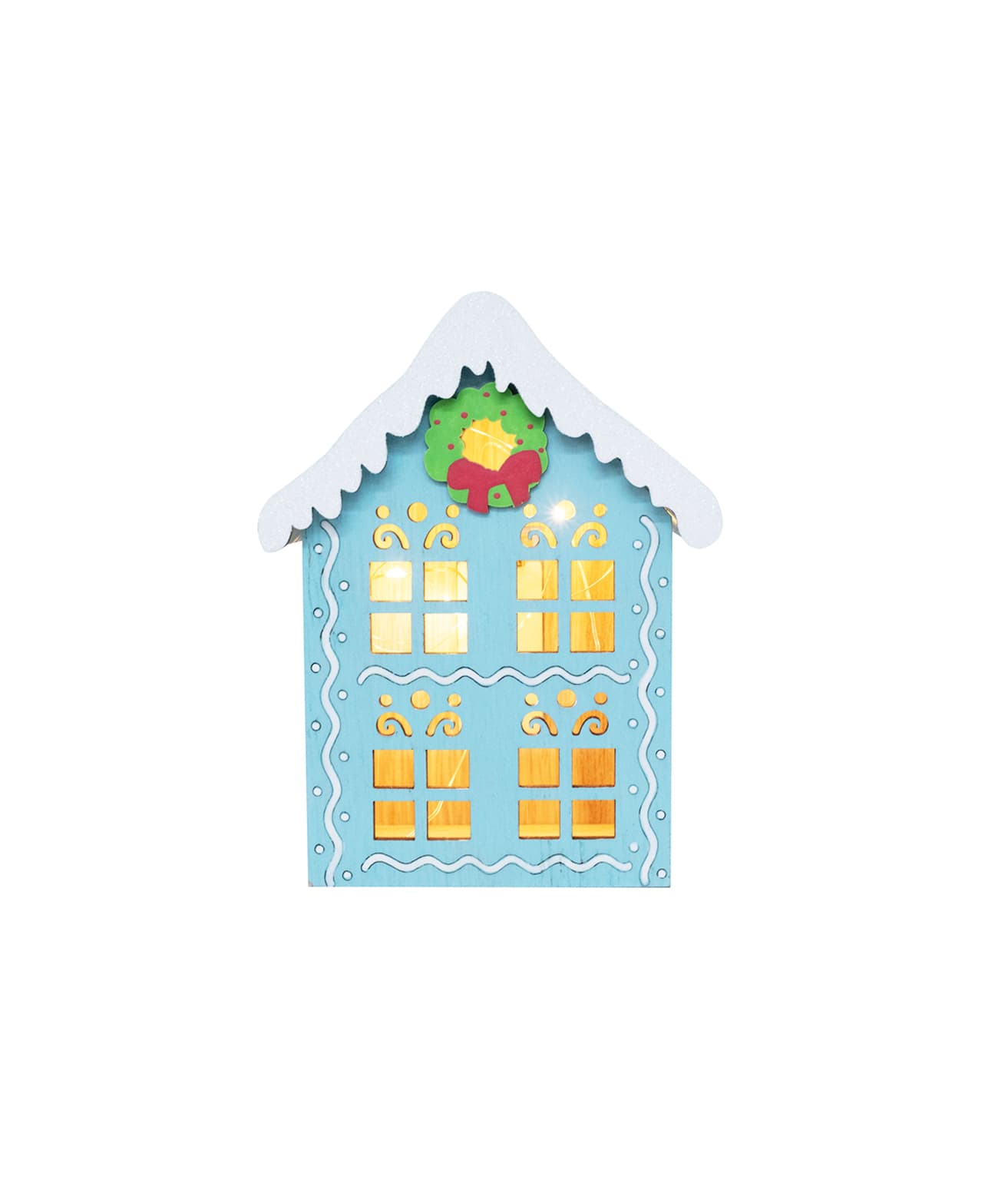 Bring a playful and festive touch to your holiday decor with this Blue Light Up Candy House 12 x 16 x 8cm.