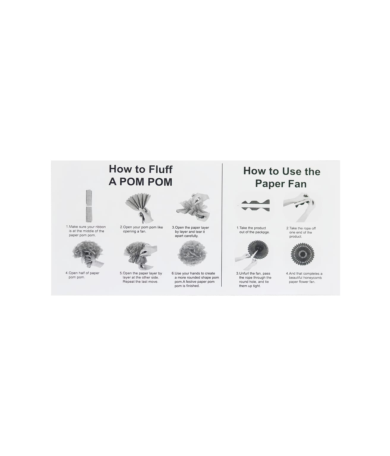 • Tissue Paper Fans: 10 inch x 2