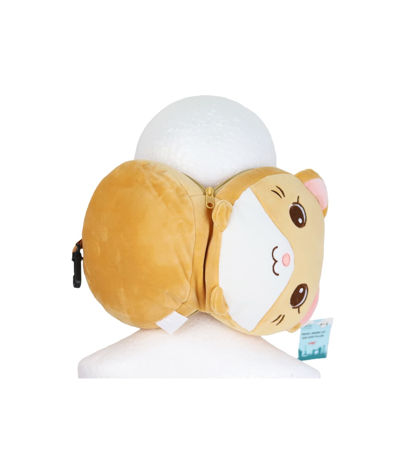Ear cups travel pillow with eye mask designed to provide comfort, neck support, and light blocking during travel and rest. Ideal for use on planes, cars, trains, and at home.