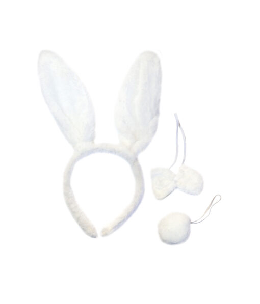 Includes a cute bunny headband, round tail with elastic, and a bowtie, perfect for holiday fun and dress-ups.