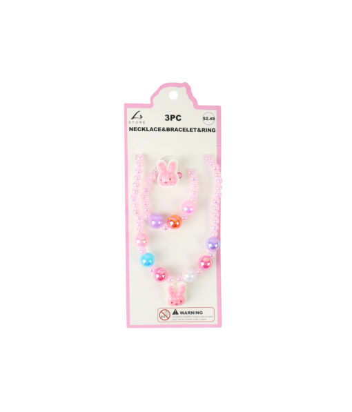 Add a fun touch to your accessories with this Bunny Theme Necklace, Bracelet & Ring Set.