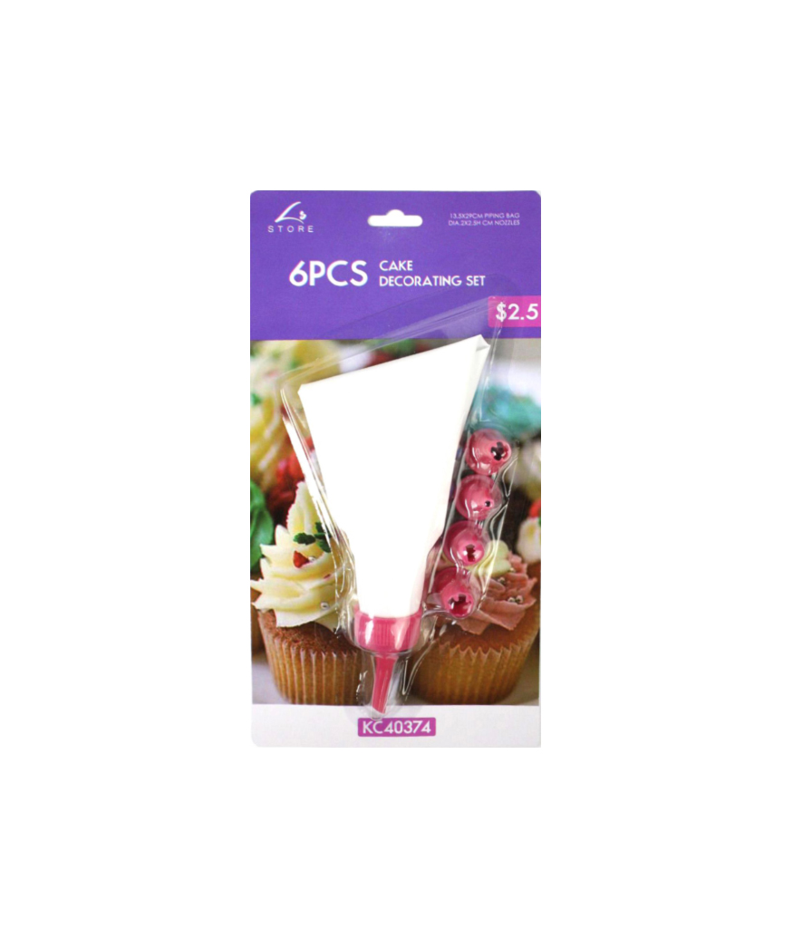 Our 6 piece cake decorating set is the perfect way to decorate your baked goods and desserts. Create a variety of designs using its 5 different nozzles.