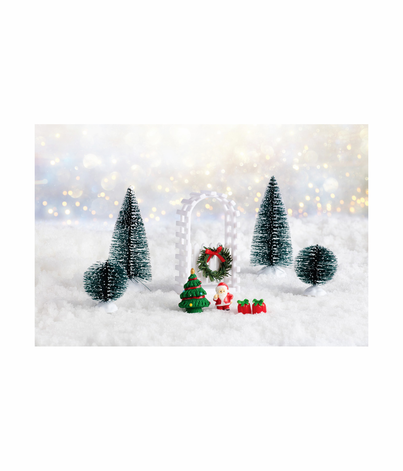 Create a festive holiday scene with this Christmas Decoration Scene with Gate 9 piece set.