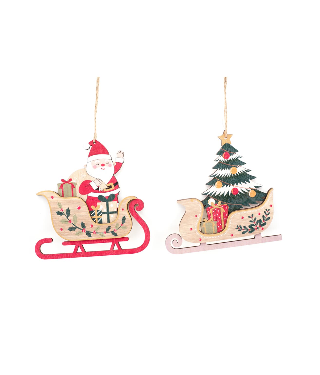 Bring festive charm to your holiday decor with this Christmas Sleigh Tree Ornament Assorted 15cm.