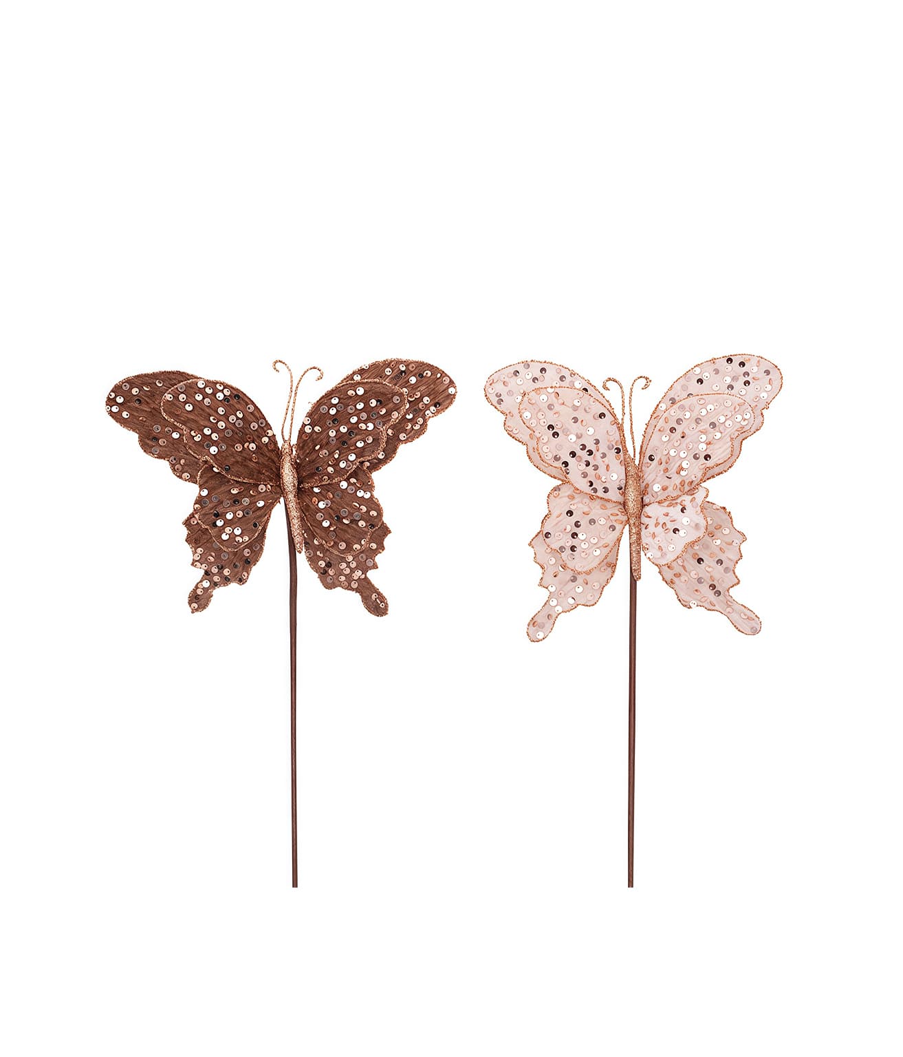 Add a touch of shimmer to your decor with this Copper & Champagne Sequin Butterfly With Clip, 25cm.