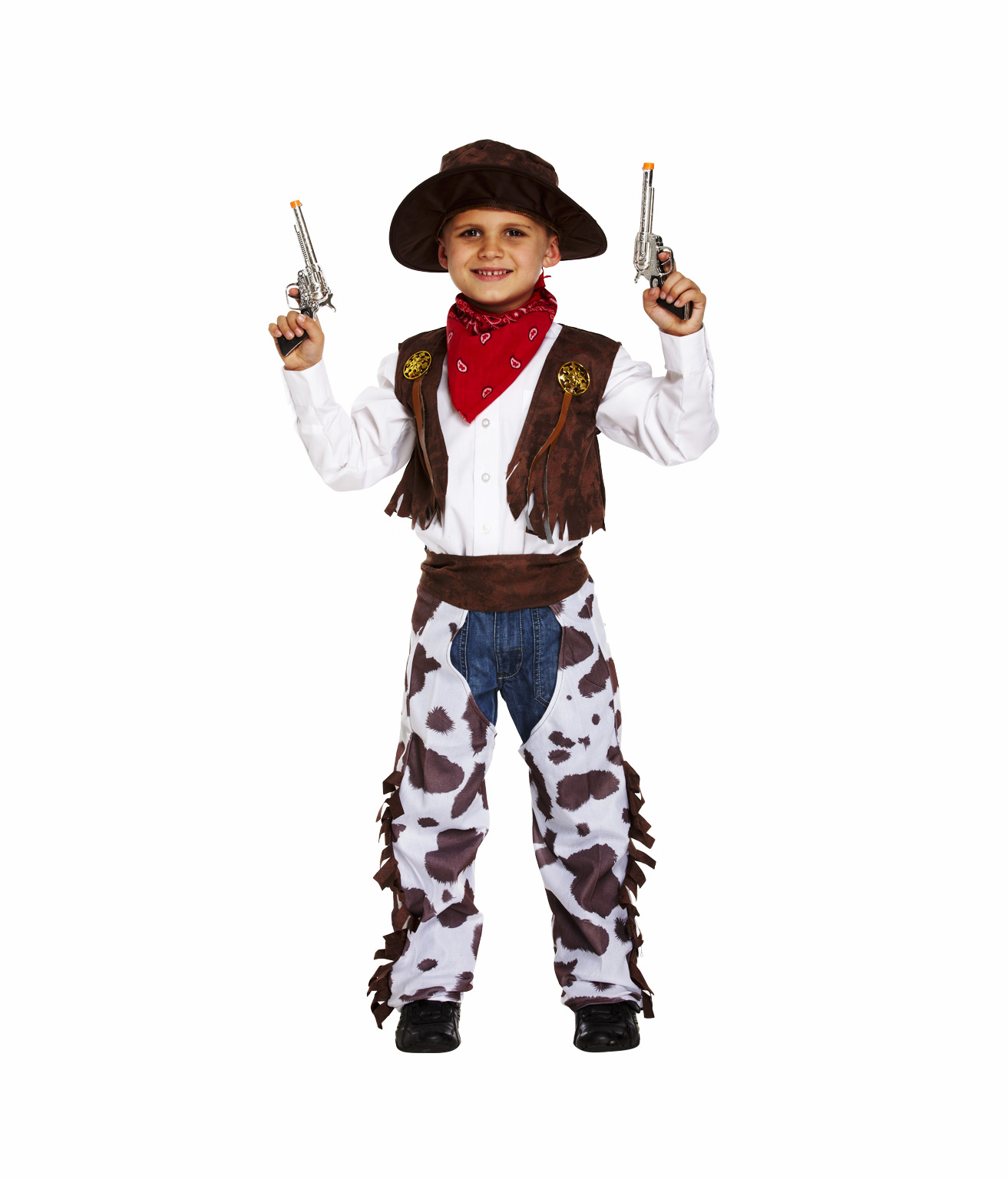 Featuring a classic Wild West look with vest, chaps, bandana, and hat, your little one will be ready to ride into any costume party, school event, or western-themed day in true cowboy style.