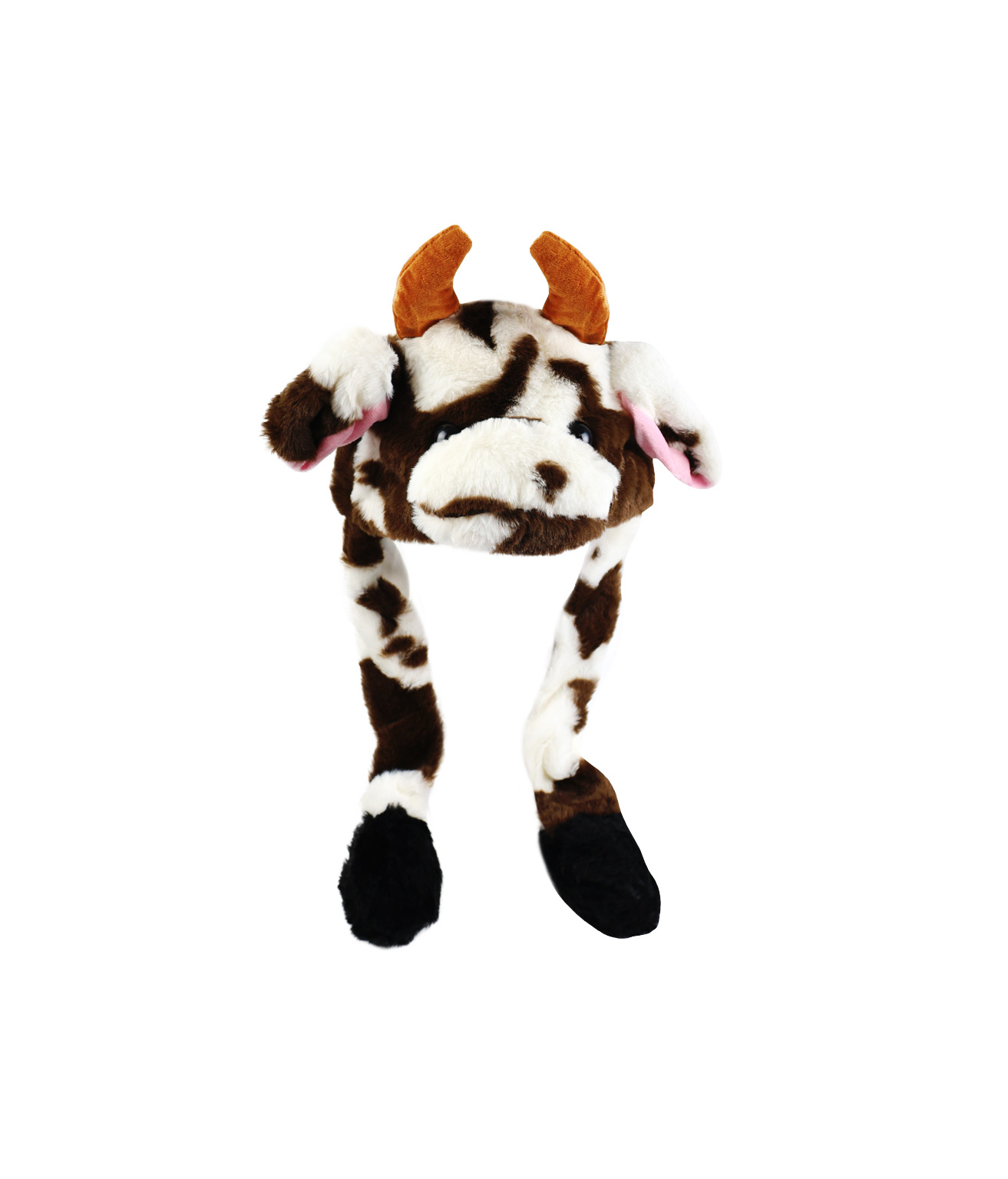 Stay warm and playful with this Dairy Cow Plush Hat, featuring fun moving ears for added charm.