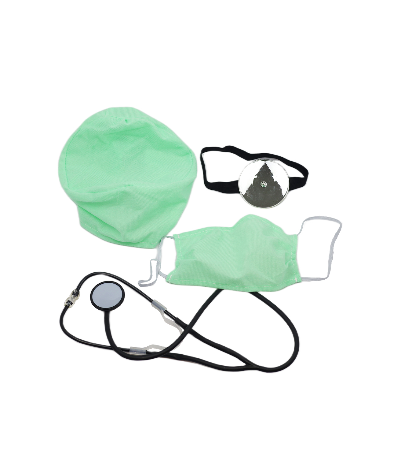 This comprehensive set includes a classic doctor’s hat, a realistic stethoscope for checking heartbeats, a head mirror for focused examinations, and a medical mask for hygiene.