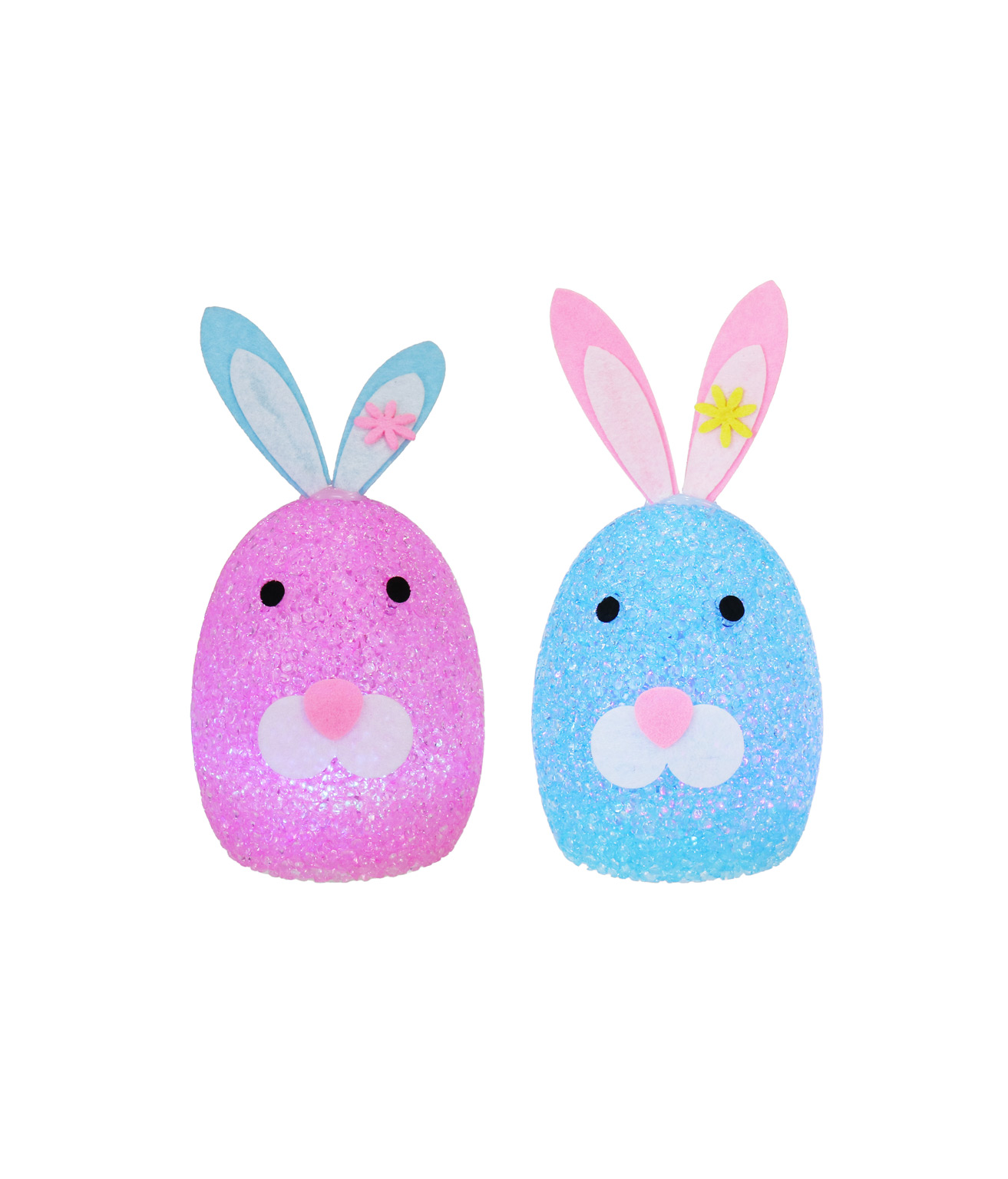Available in pink or blue, the egg features a cute bunny design that lights up and changes color for a magical effect.