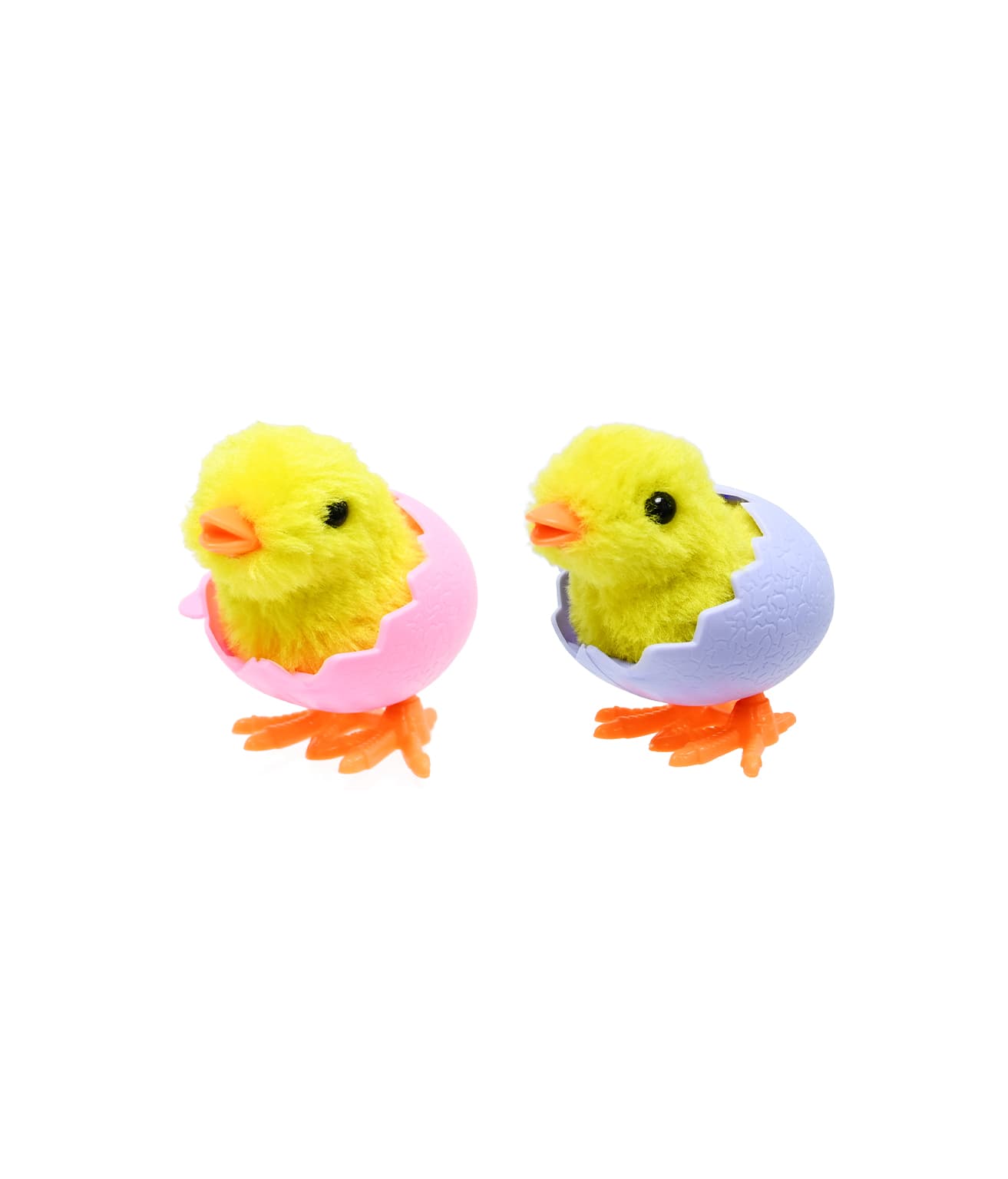 Each plush chick features a wind-up mechanism that makes it move around once activated.