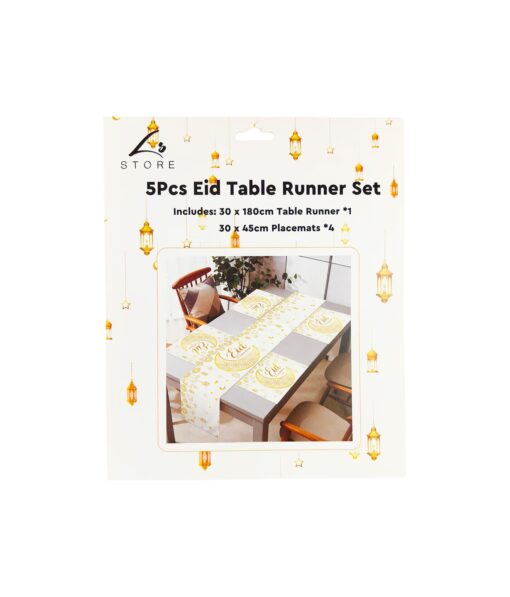 Features a white base with intricate gold crescent, lantern, and star motifs.