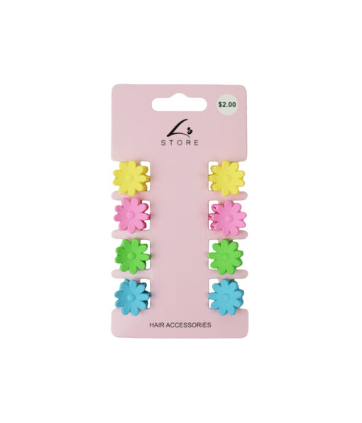 This set of 8 flower claw clips comes in a beautiful assortment of colors: yellow, green, pink, and blue.