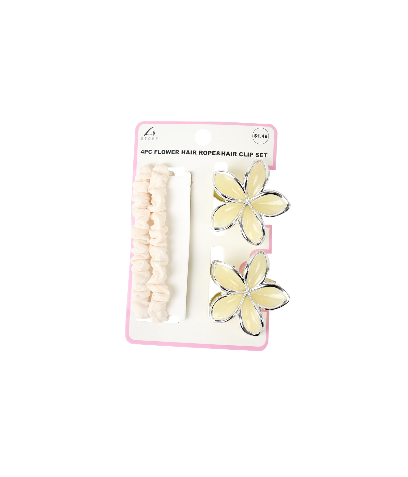 Add a fresh and feminine touch to your hairstyle with this Flower Hair Accessory Set, featuring matching scrunchies and hair clips.