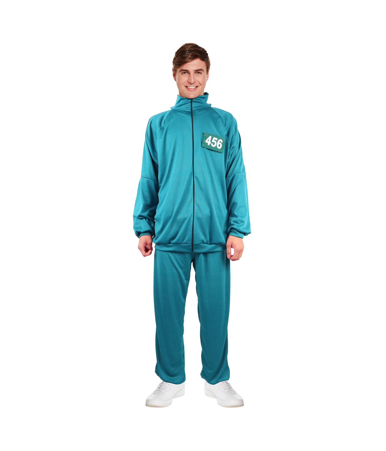 Our game track suit costume for adults features tracksuit with assorted numbers.