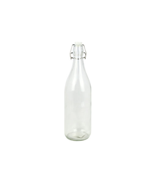 A 1L glass bottle with a secure clip lid, perfect for storing beverages, juices, water, or homemade drinks.