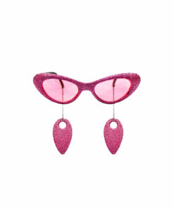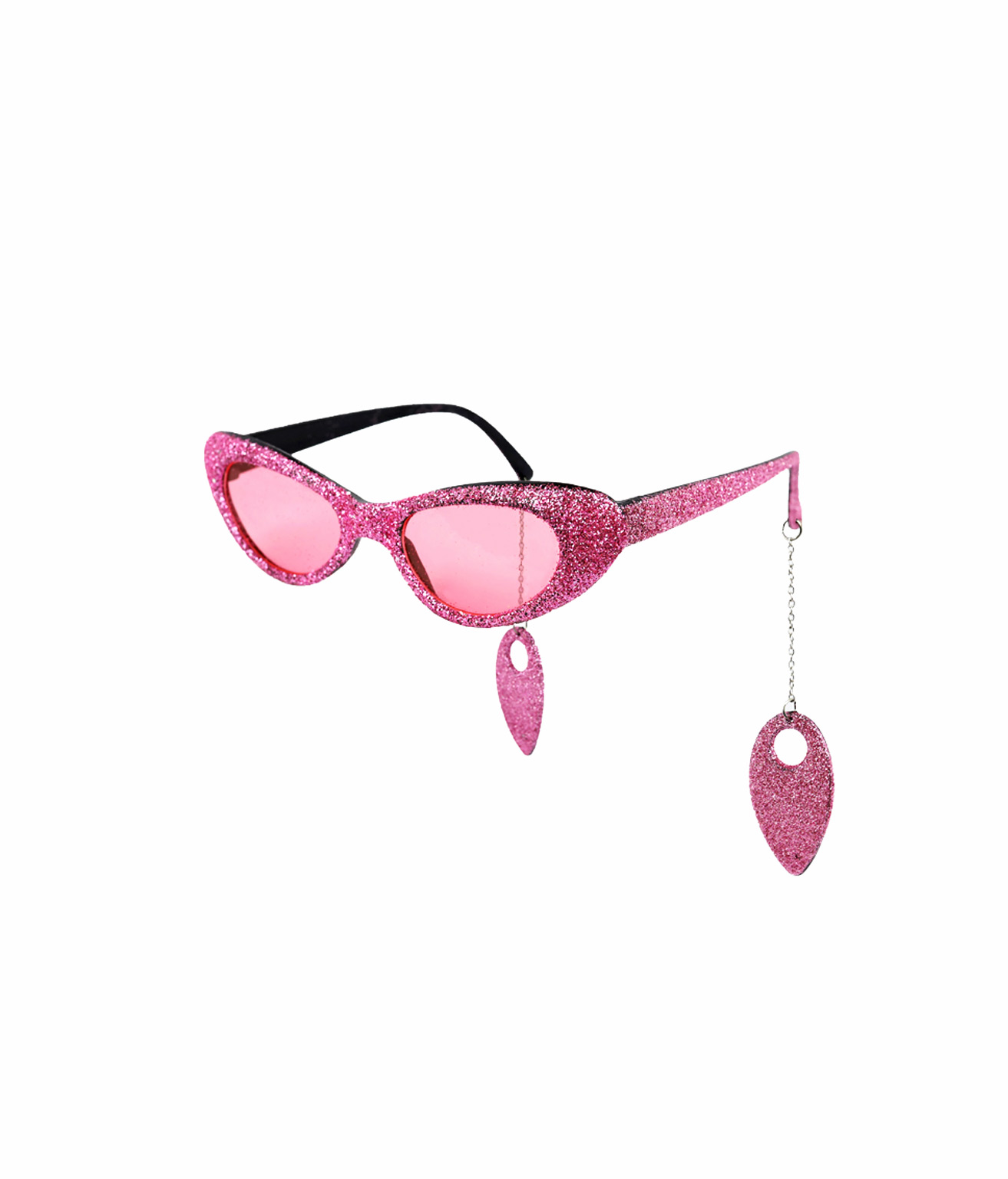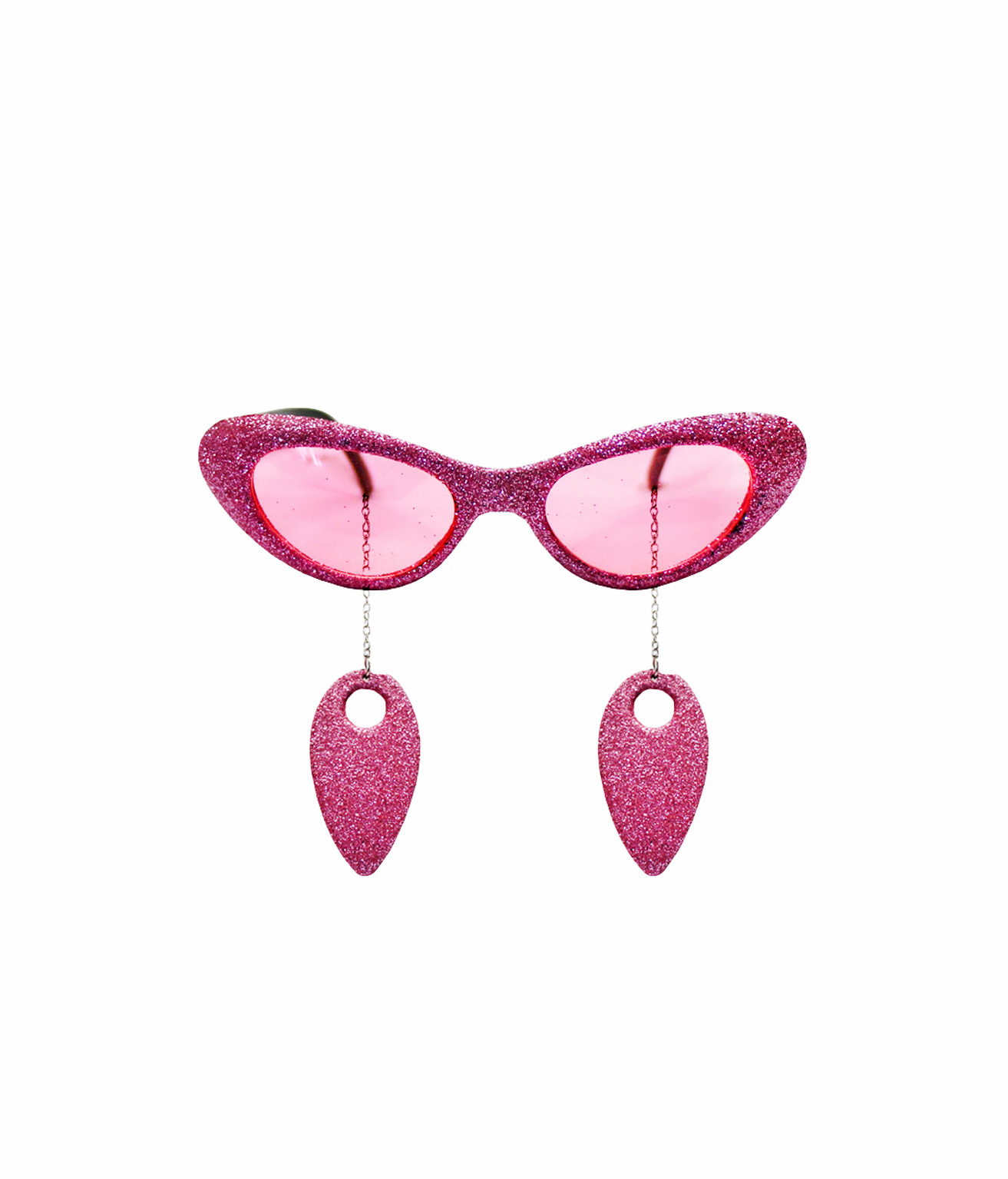 Perfect for disco nights and retro parties, these 1970s-inspired pink frames are covered in glitter and feature dangling pieces that shimmer as you dance.