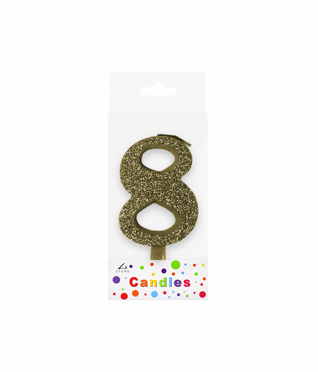 Add a sparkling touch to your celebration with our Glitter Number Candle 8.