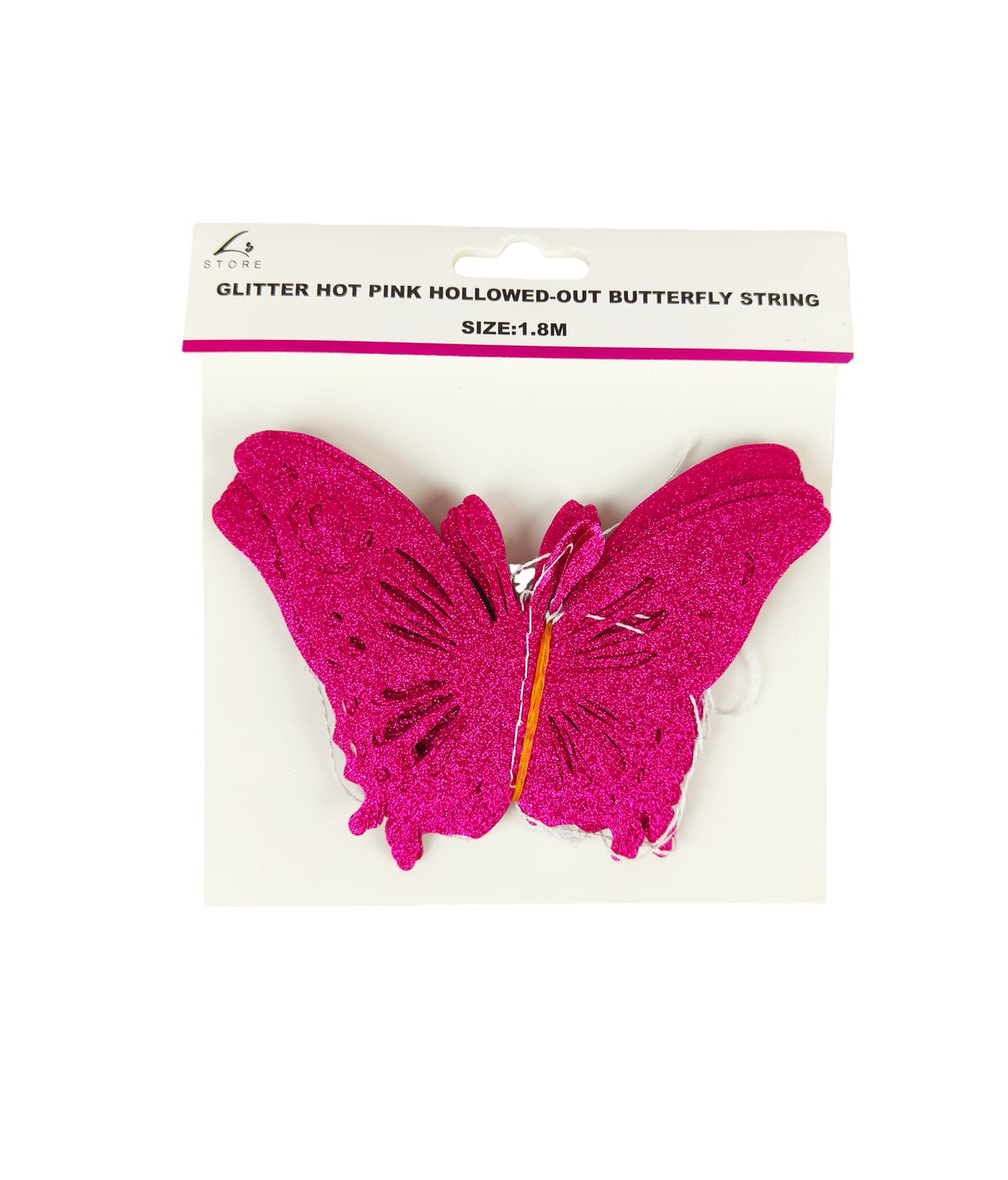 This 1.8m Hollowed-out Butterfly String is a decorative hanging accessory, available in colorful 3D styles, ideal for adding a delicate, whimsical touch to indoor events and spaces.