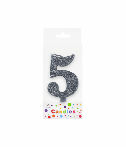 Add a sparkling touch to your celebration with our Glitter Silver Number Candle 5.