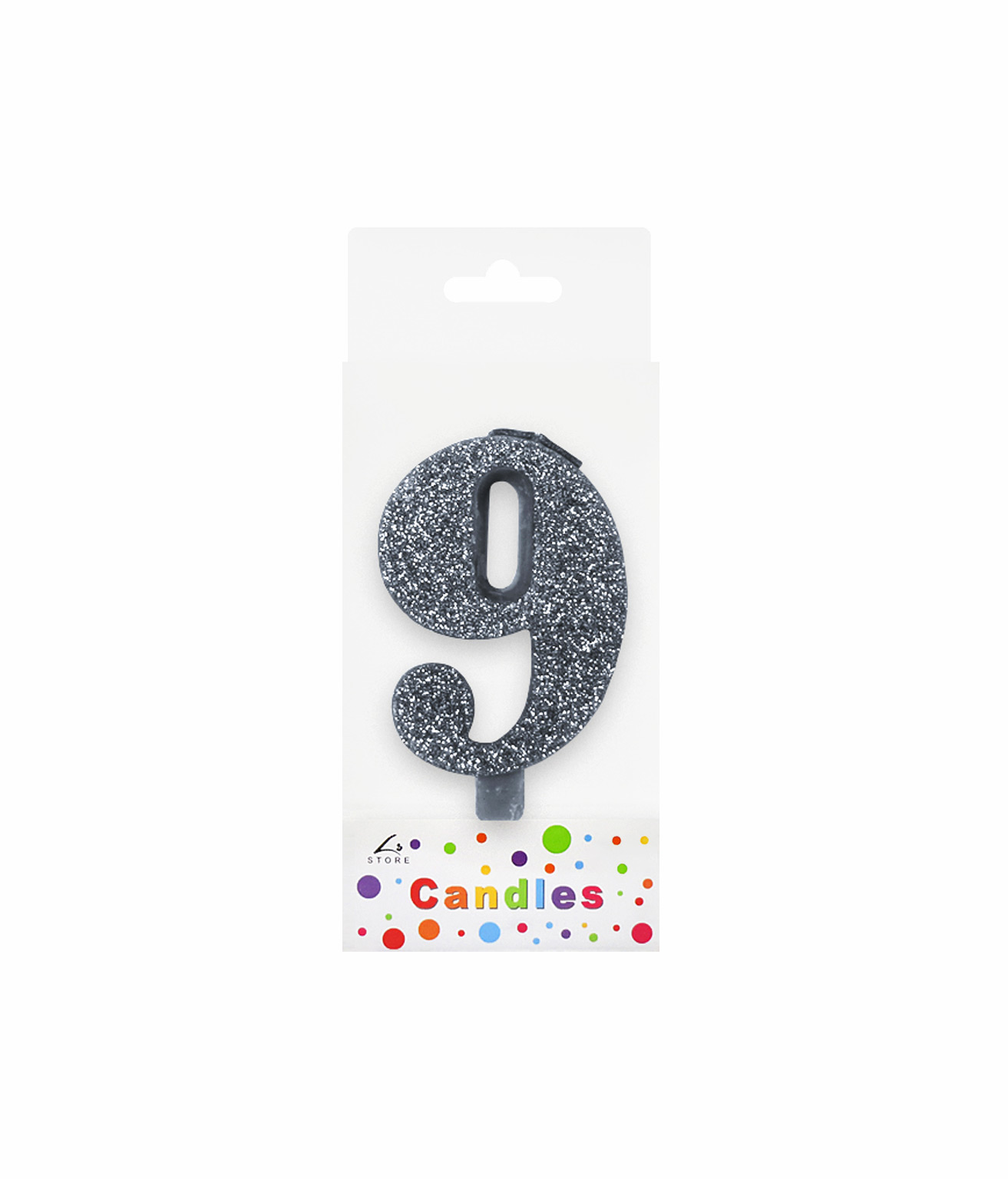 Add a sparkling touch to your celebration with our Glitter Silver Number Candle 9.